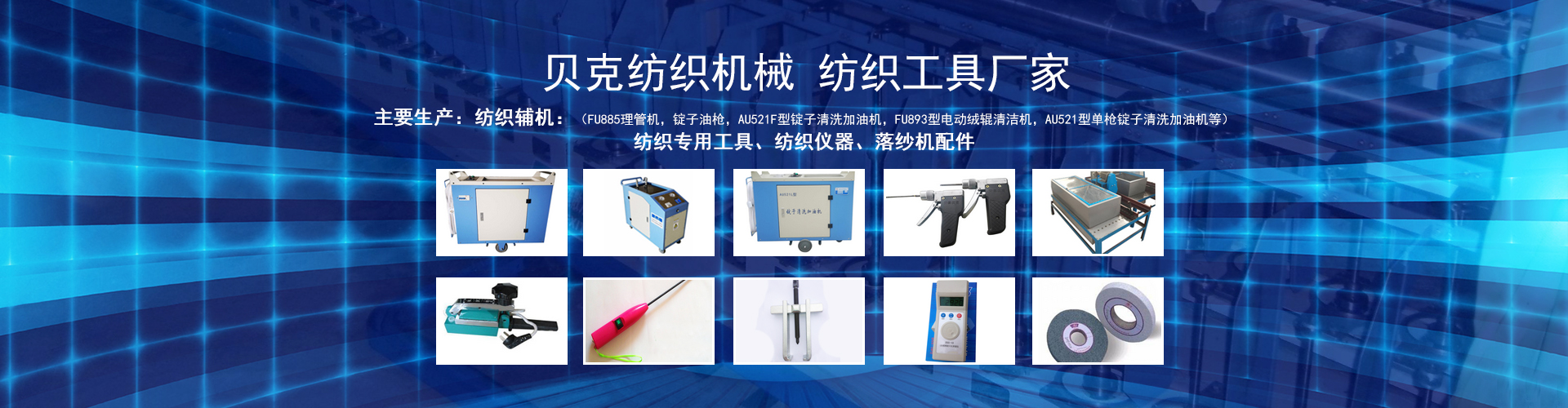 安徽貝克紡織機(jī)械設(shè)備有限公司座落于皖東天長(zhǎng)市東郊S312省道109km仁和段,毗鄰江蘇南京、揚(yáng)州、水陸交通十分便利,環(huán)境優(yōu)美。 公司是主要產(chǎn)品有:紡織專(zhuān)用工具(前紡、后紡保全、保養(yǎng)、平車(chē)、全套專(zhuān)用工具和通用工具),皮輥房系列(皮輥磨床、壓圓機(jī)、套皮輥機(jī)、皮輥切割機(jī)有機(jī)械式和液壓式兩種供選擇),梳棉輔助機(jī)械(刺輥包磨機(jī)、清刷蓋板機(jī)、金屬鋸條倒料機(jī)蓋板踵趾面銑削機(jī)、包針布慢速傳動(dòng)裝置 ……